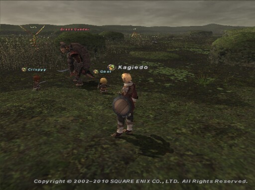 カニ狩りで、2名の忍タルタルを前衛に置いて、白魔である自分は、後衛でせっせと回復&麻痺らせ、防御下げです。
