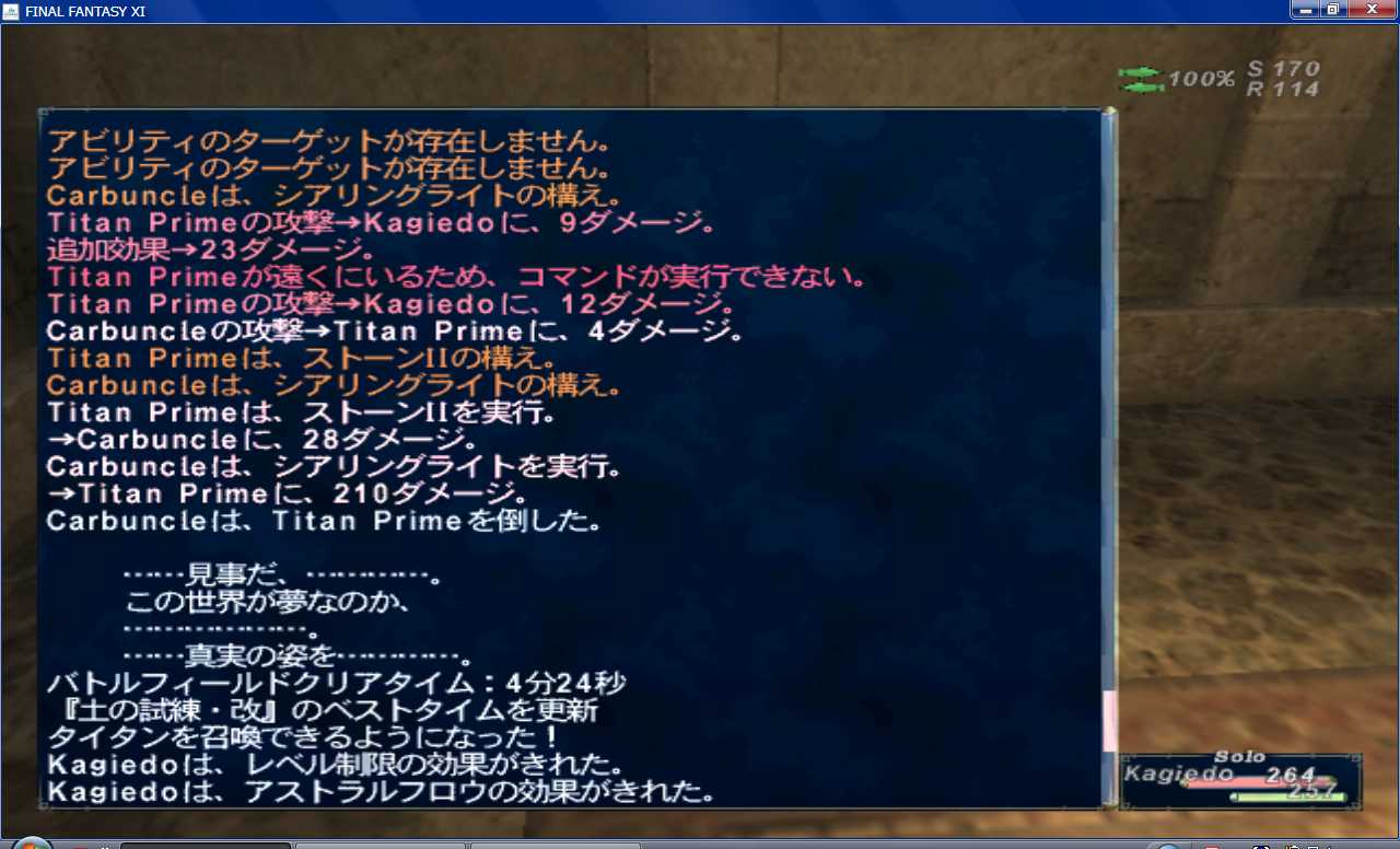 召喚獣タイタンとソロで戦う試練・改の戦いレポートです。